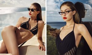 A fare da cornice alla nuova Campagna SS18 Gigi le splendide spiagge di Ibiza con acqua cristallina e sabbia bianca. La supermodella bionda ha progettato tre stili diversi che vanno dalle cornici cat eye agli stili rotondi e alle forme geometriche.