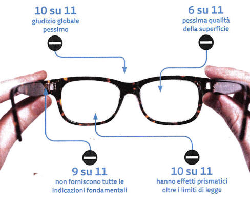 Pertanto l’uso prolungato degli occhiali premontati può dar luogo ad affaticamento della vista dovuto ad eccessivo sforzo dei muscoli oculari ( astenopia ), che si presenta con lacrimazione e bruciore agli occhi, secchezza o sensazione di corpo estraneo nell’occhio (tipo sabbia), ovvero fastidio alla luce ( fotofobia ), dolore, mal di testa, vista annebbiata o sdoppiata e capogiri.