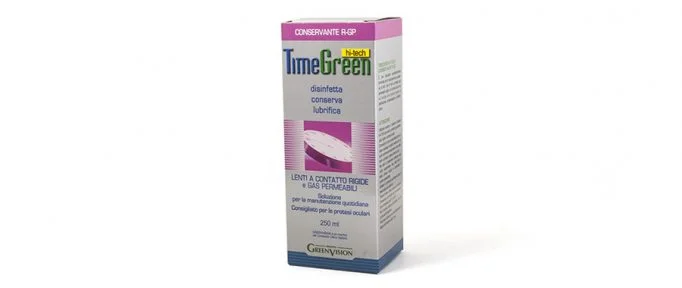 La soluzione TimeGreen hi-tech a marchio Green Vision è il liquido ideale per la pulizia e la conservazione delle lenti a contatto rigide o gas permeabili.