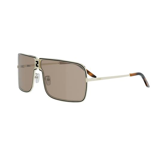 Modello a maschera oversize in metallo presentato alla sfilata FW25. Modello unisex della linea FENDINESS con un esclusivo logo FF in versione vintage ispirato agli archivi sul ponte e lenti flash rivisitate.