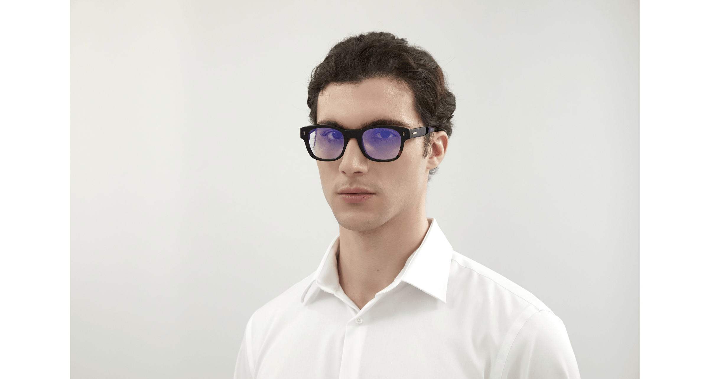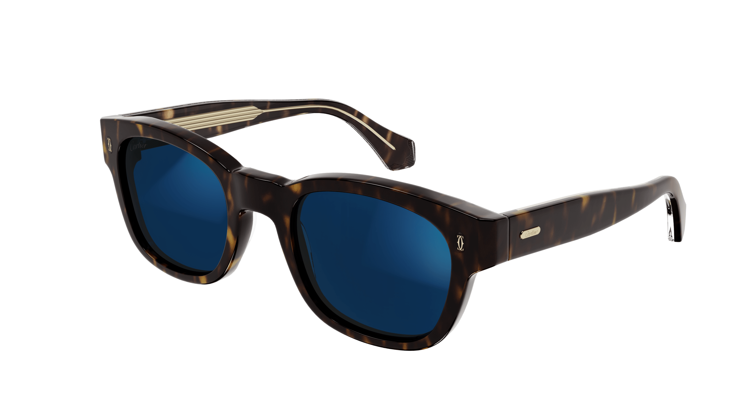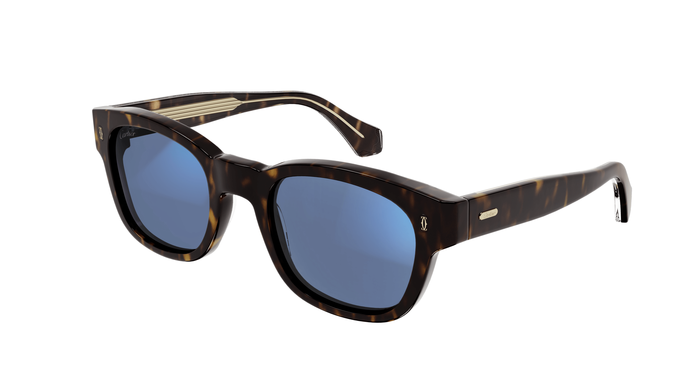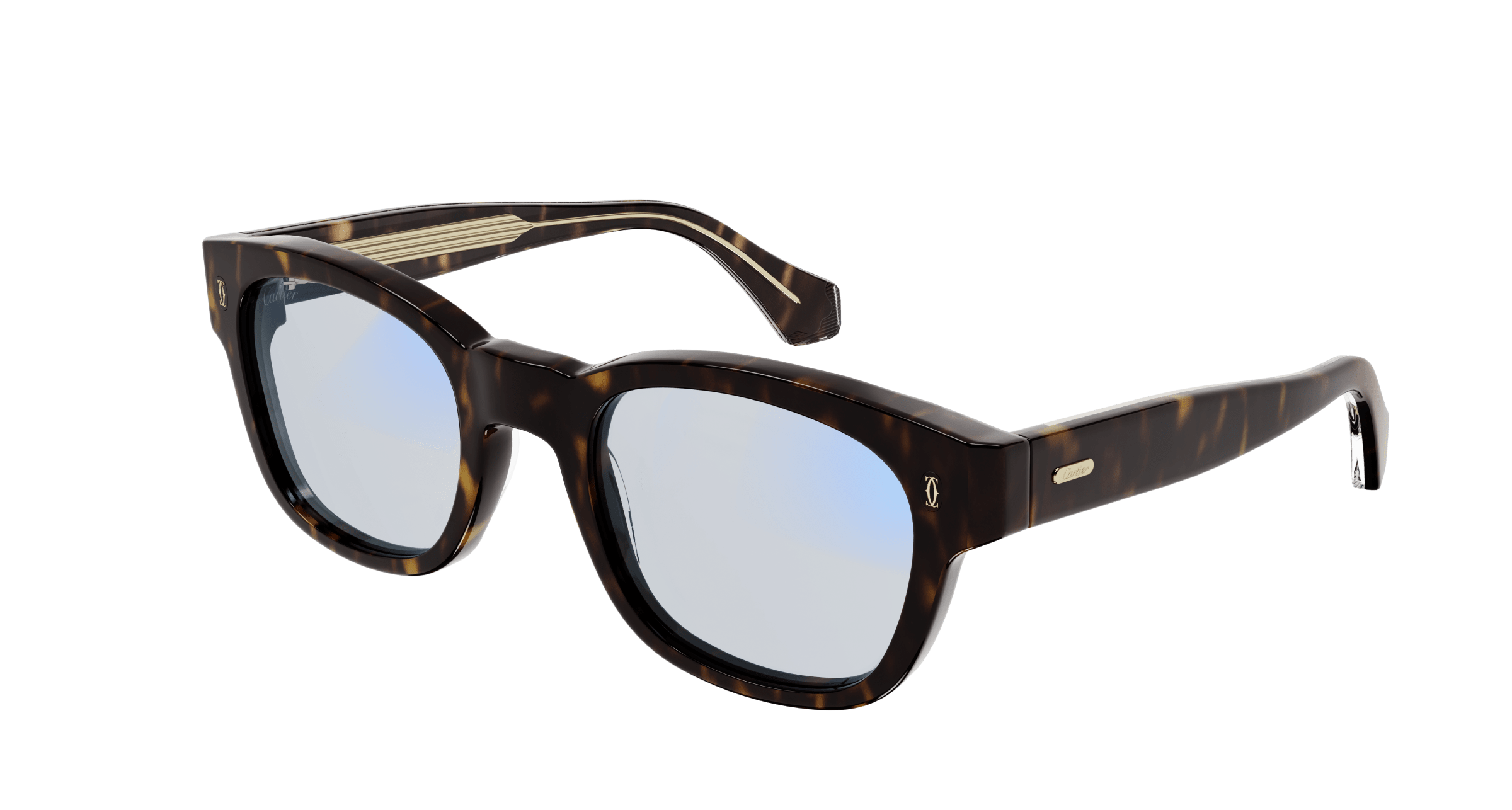 Motivo doppia C di Cartier fotoinciso sul musetto e targhetta con logo Cartier sulle aste.
