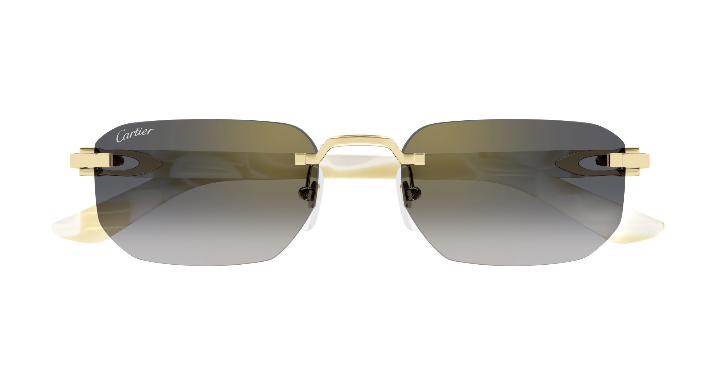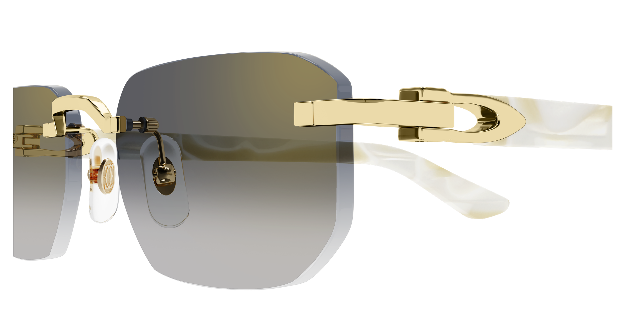 Rivisitazione contemporanea e sofisticata della storica asta Décor C in versione combi. Montatura rimless con un morbido profilo rettangolare facile da indossare. Iconico Décor C perfettamente inserito nelle aste in acetato, come elemento funzionale ed estetico della cerniera. Preziose finiture oro o platino abbinate a nuove aste in acetato perlato per alcune SKU.
