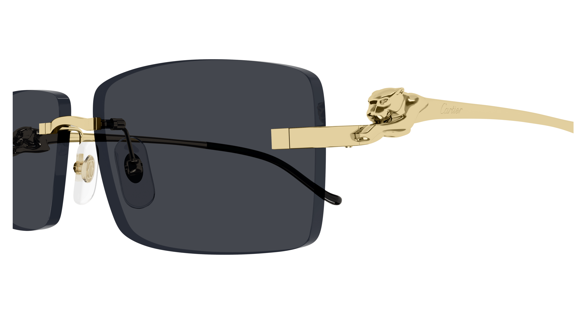 Le aste oro conferiscono agli occhiali un’ulteriore nota di eleganza, completando il design con una sottile ma poderosa dichiarazione di stile. Ogni dettaglio è curato con precisione, incarnando la filosofia di Cartier di unire l’estetica sofisticata a una funzionalità impeccabile.