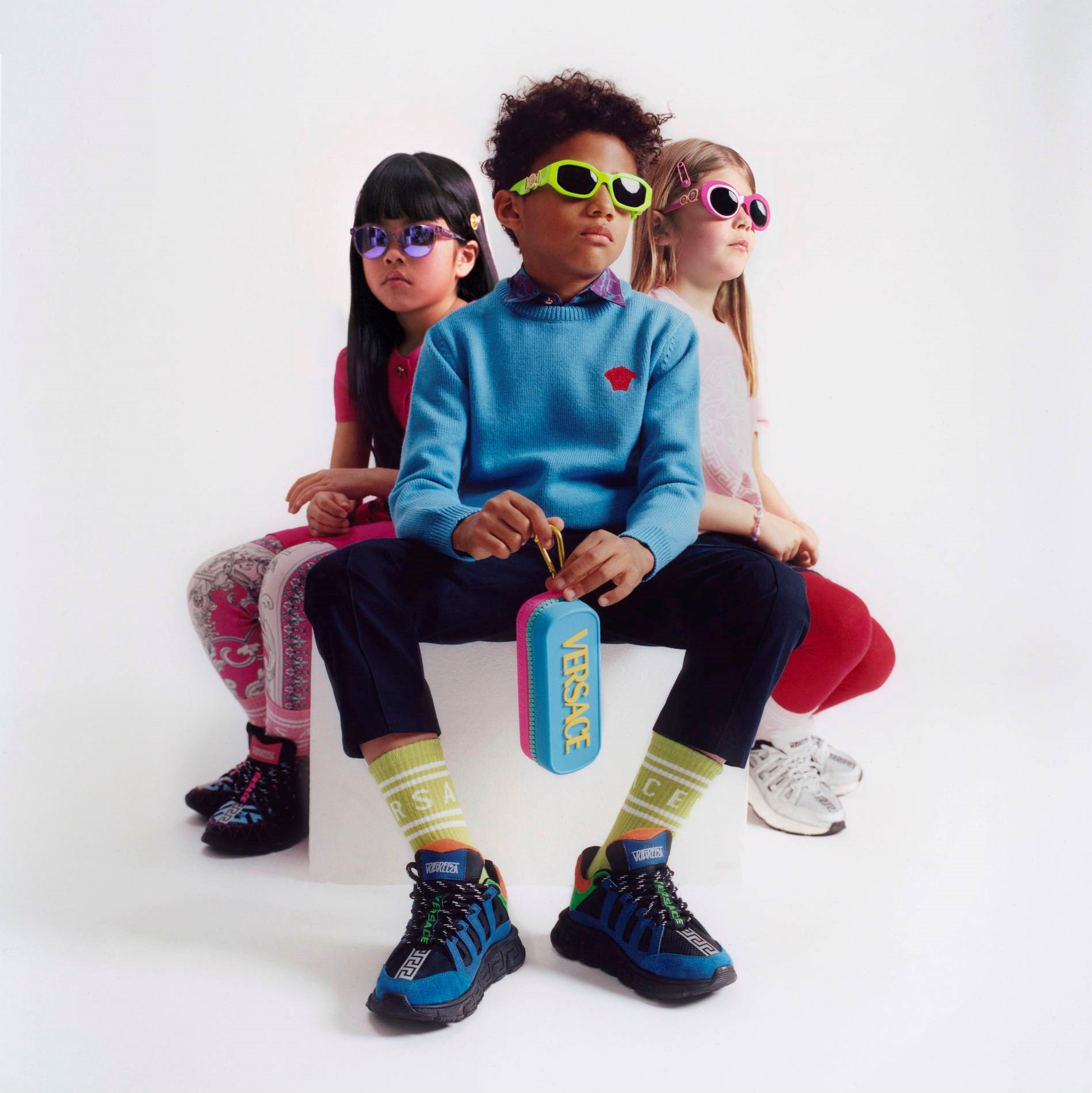 Le montature da vista e da sole per bambini di Versace si basano su alcuni degli stili più iconici del marchio, ma vengono fornite in una gamma completamente nuova di colori vivaci che parlano di gioco e meraviglia infantili.